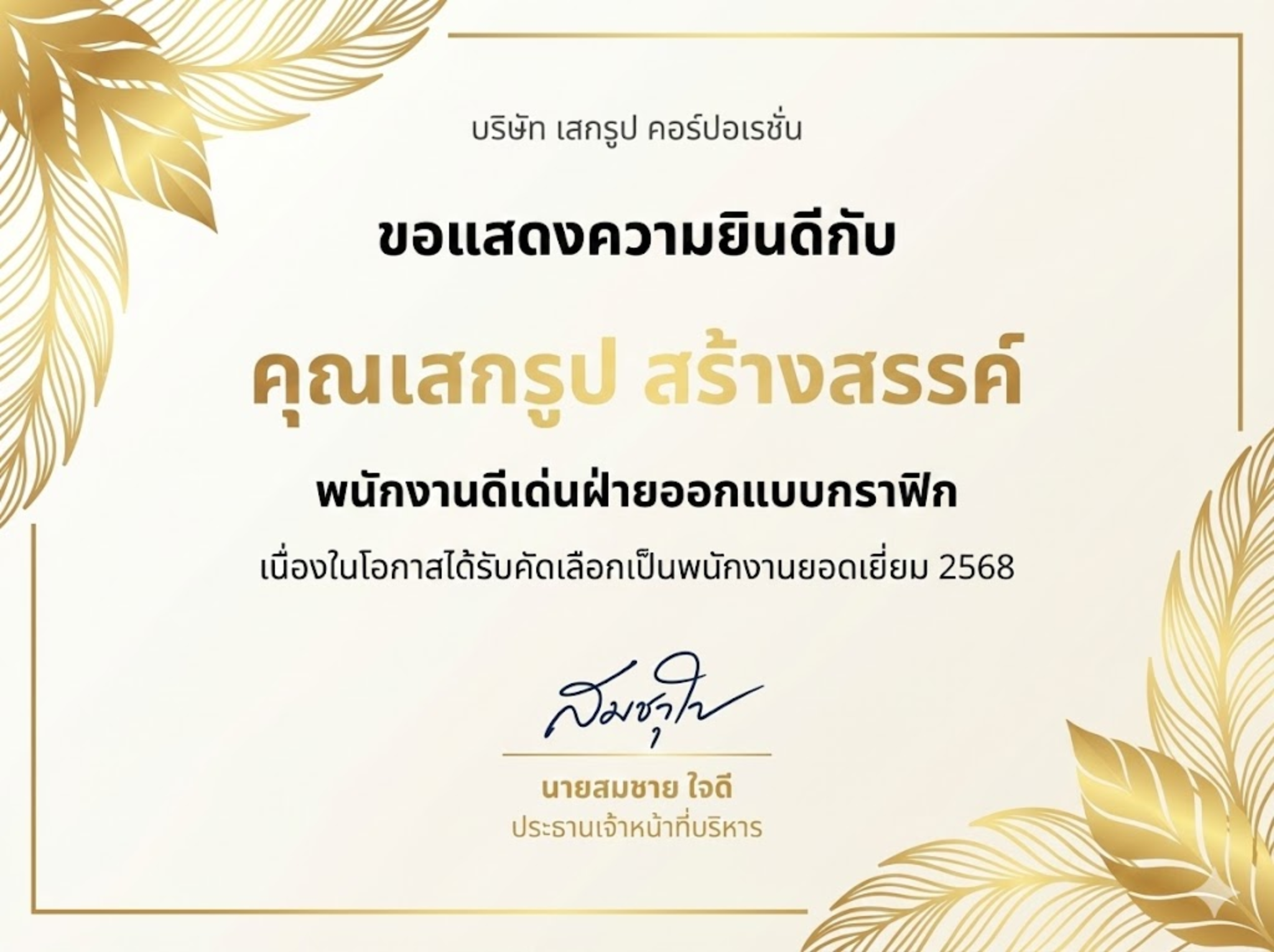 เกียรติบัตรประกาศเกียรติคุณ (ธีมสีทอง)