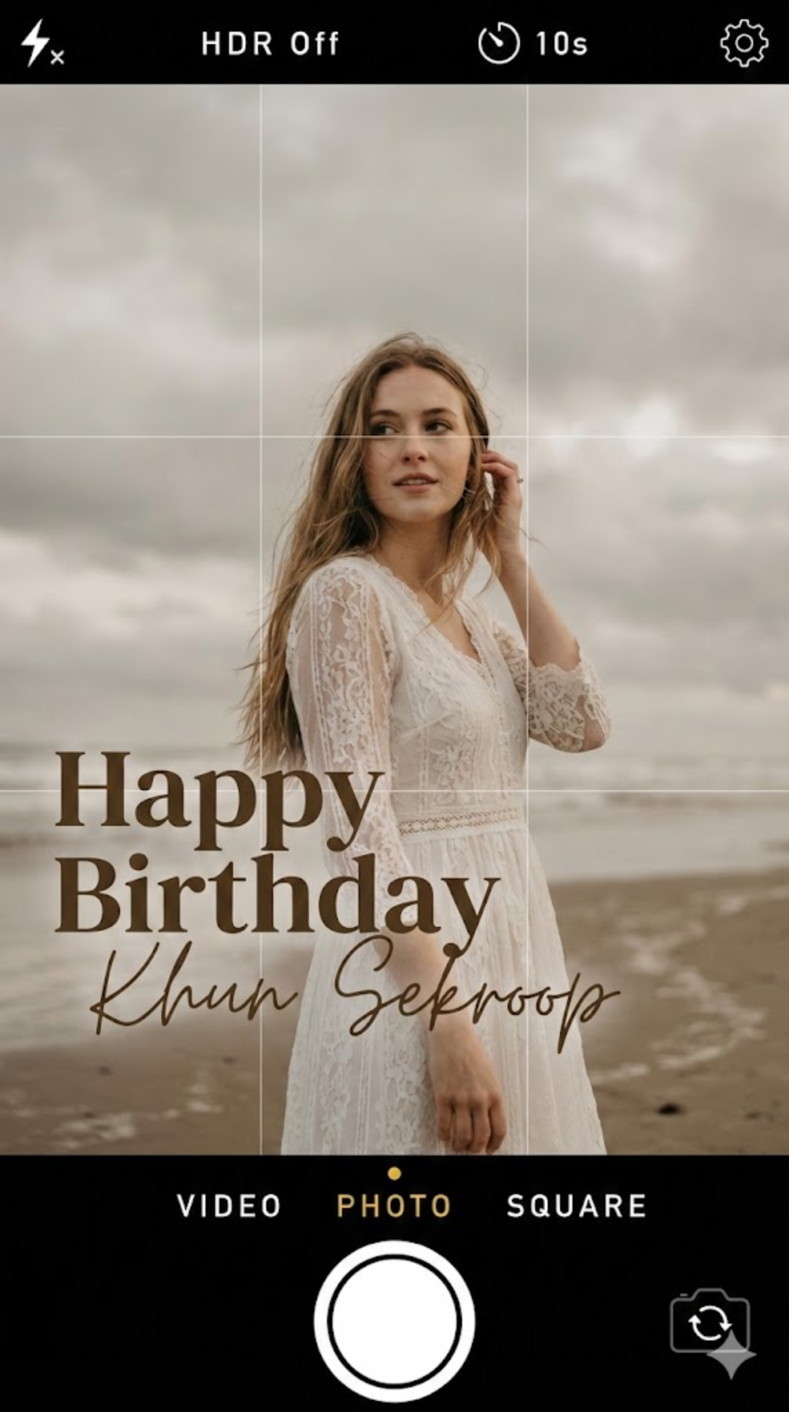 เทมเพลตอวยพรวันเกิดในดีไซน์หน้าจอกล้องมือถือ พร้อมเส้น Grid และข้อความสไตล์มินิมอล