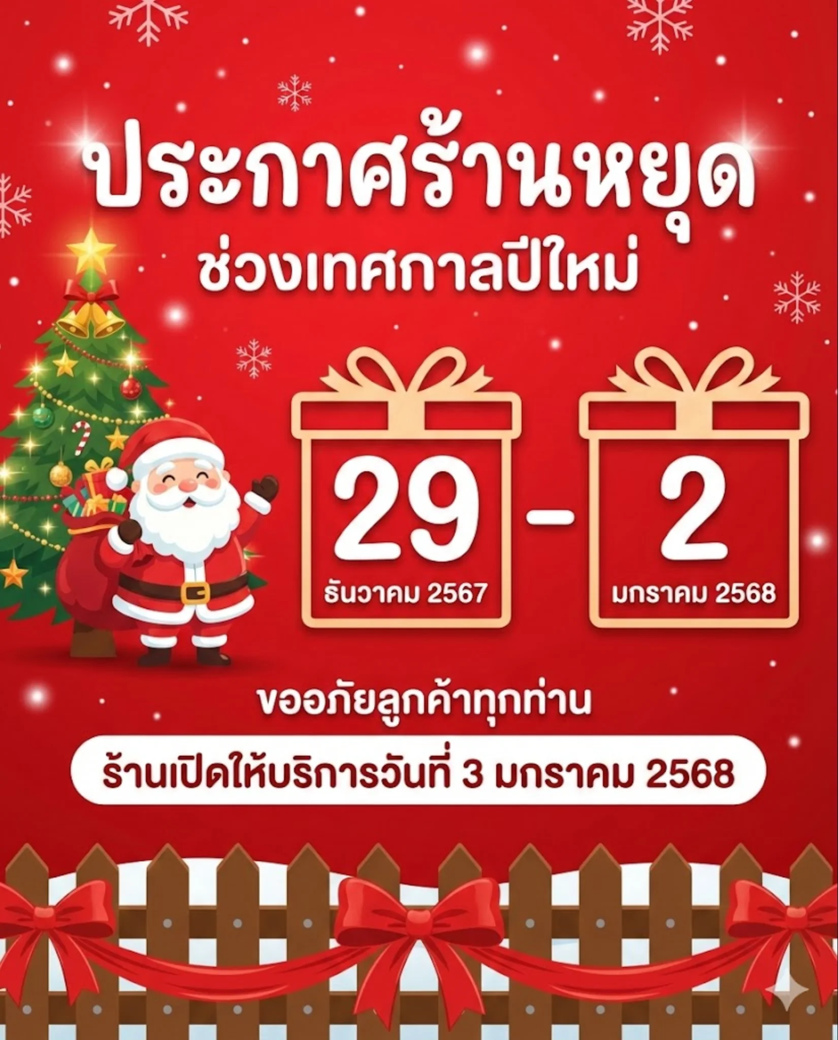 ประกาศวันหยุดร้านธีมคริสต์มาส