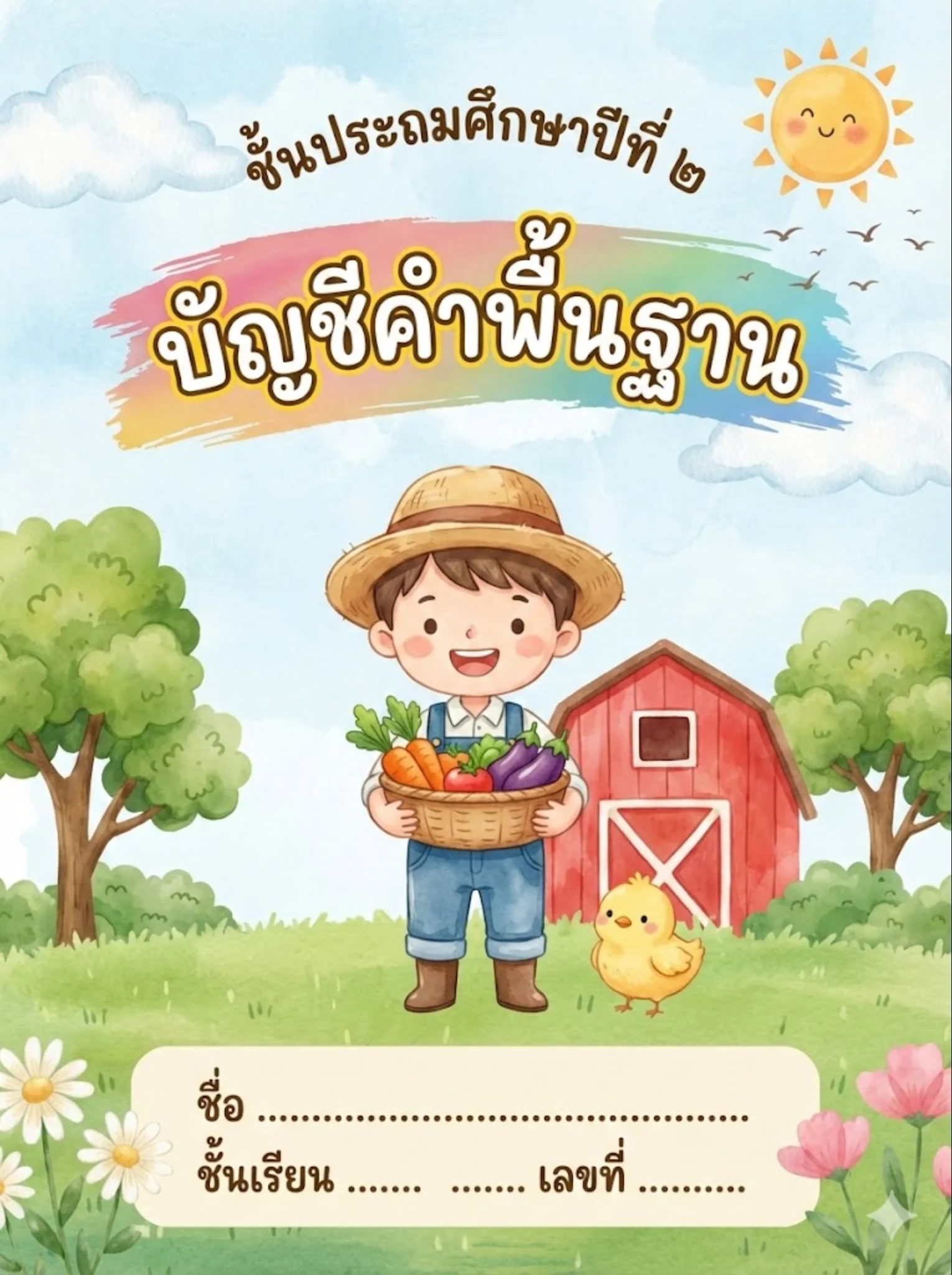 ปกสมุดบัญชีคำพื้นฐาน ธีมเด็กชาวสวน