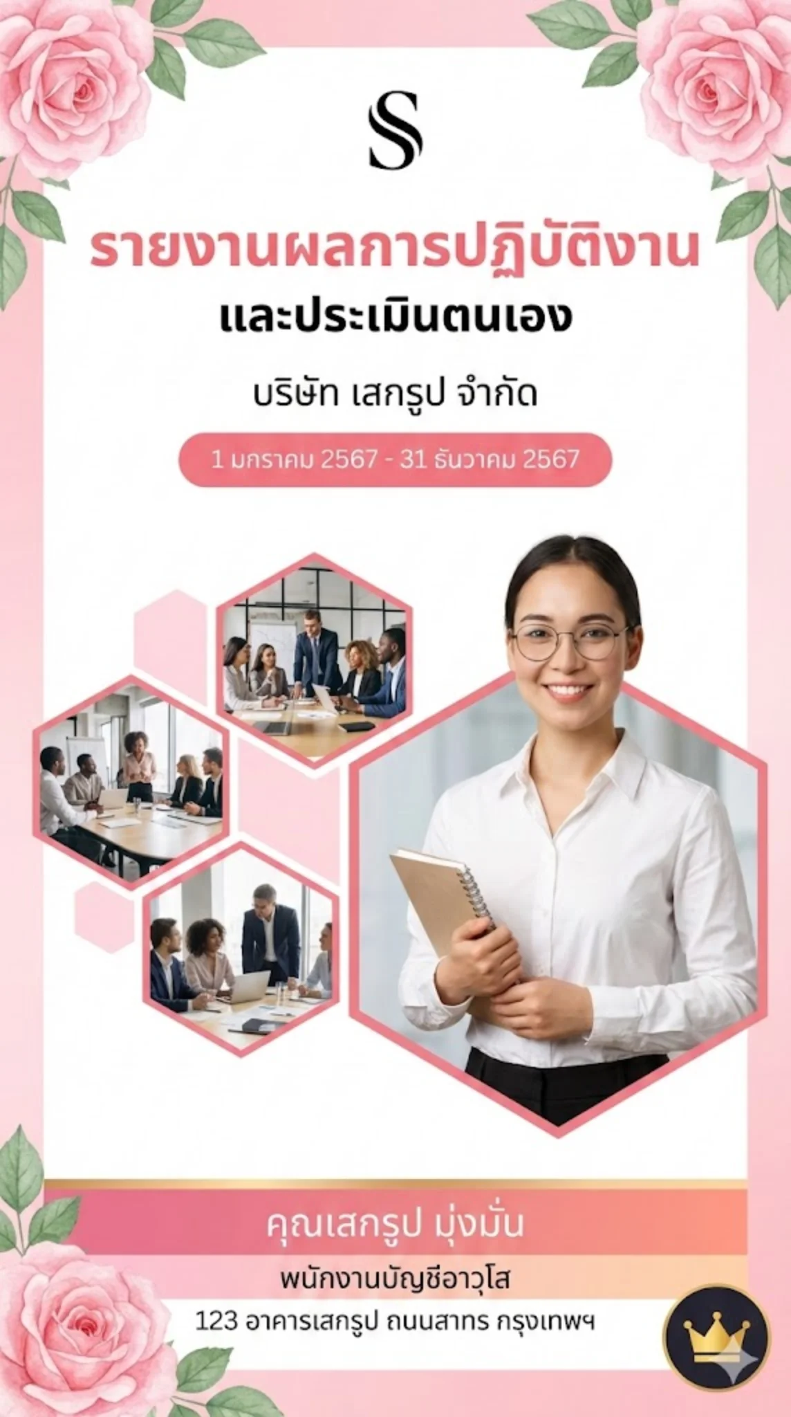 #แนะนำพนักงาน#รายงานผลงาน#โปสเตอร์แนวตั้ง#ธีมดอกไม้#สีชมพู#profile#resume#organization