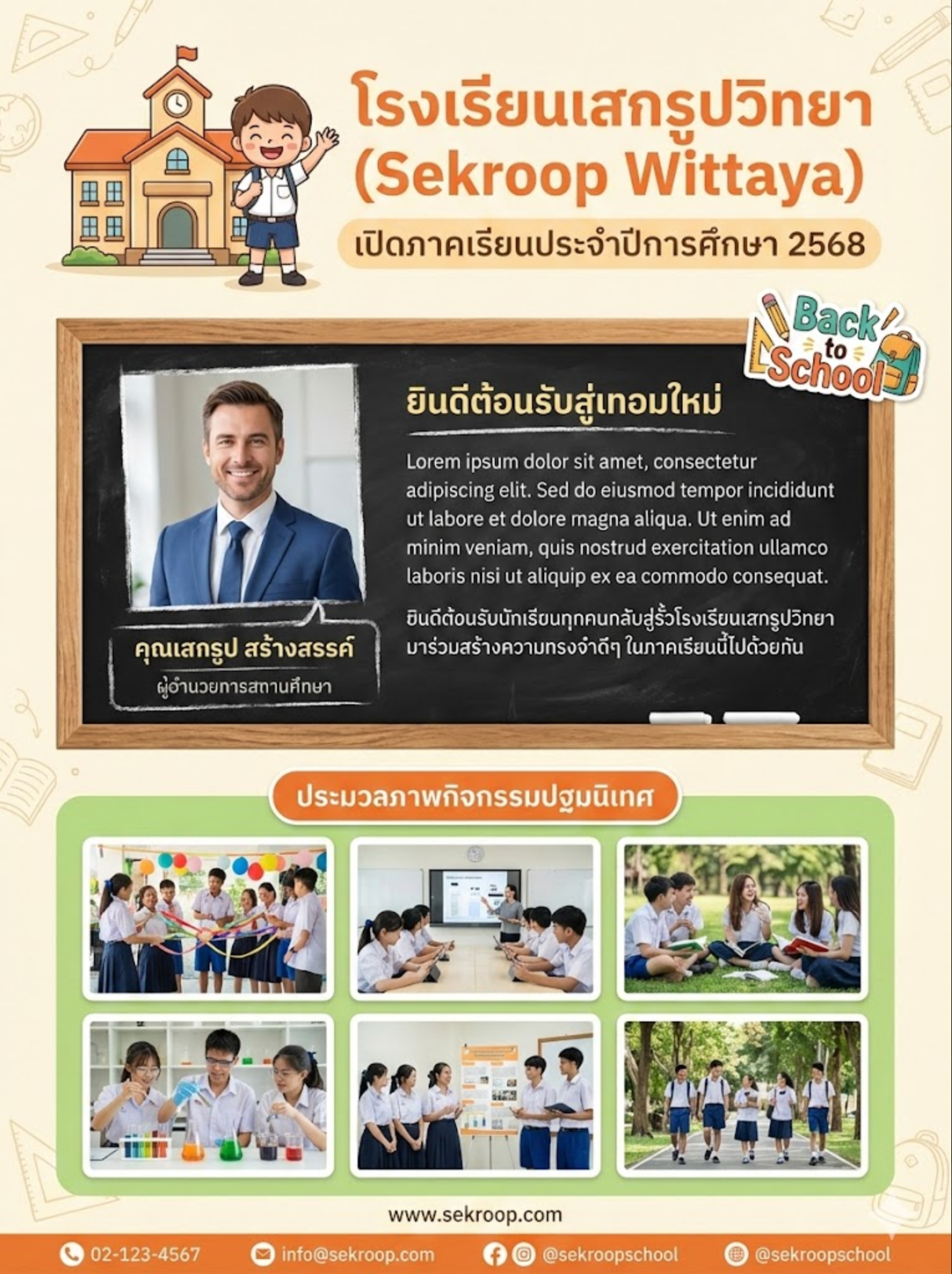 หมายเหตุ: ภาพที่สร้างโดย AI อาจแตกต่างจากตัวอย่างได้ เนื่องจากเป็นการสร้างใหม่ทุกครั้ง ผลลัพธ์ขึ้นอยู่กับข้อมูลที่คุณกรอกและการประมวลผลของ AI