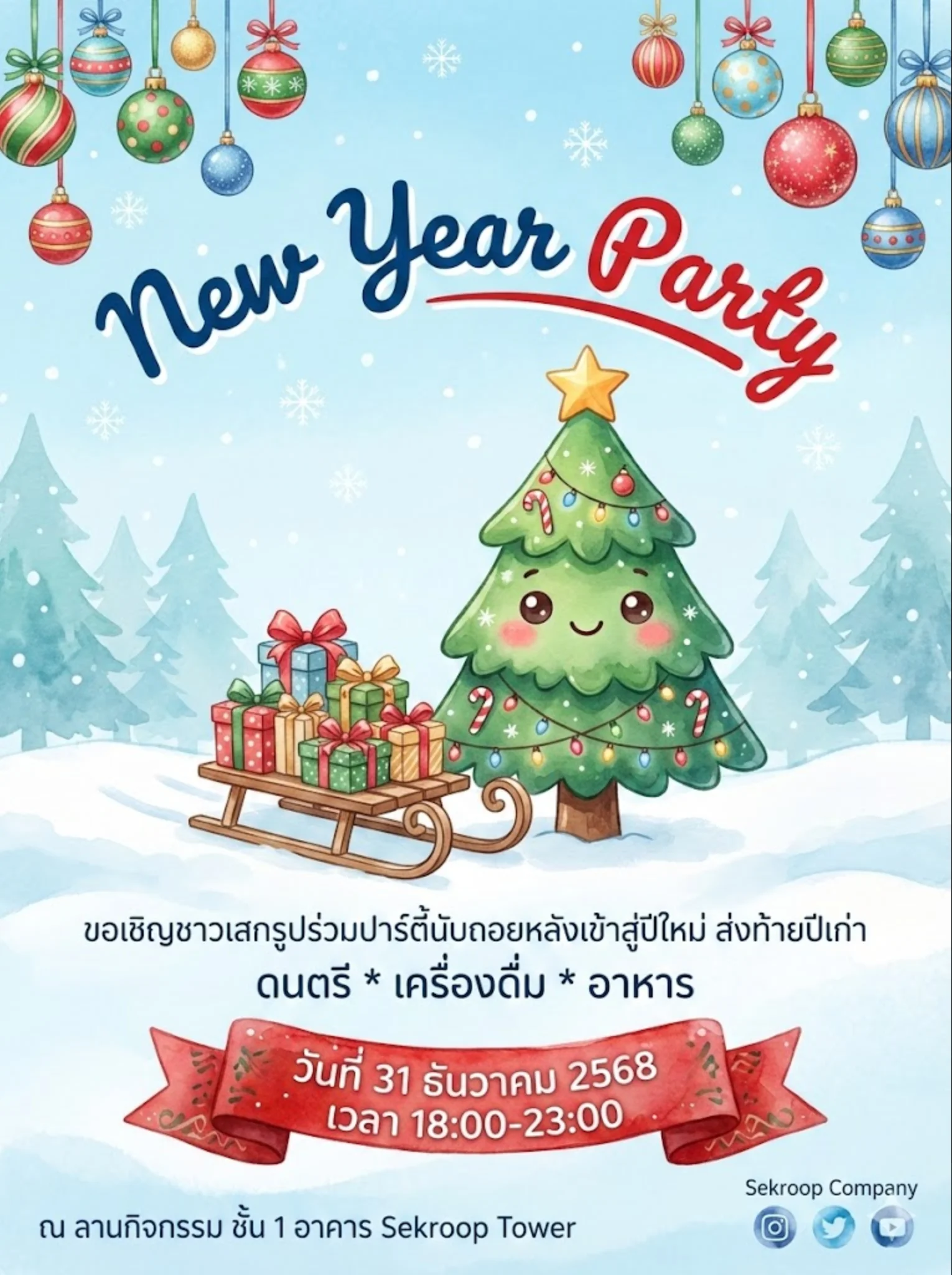 #ปีใหม่#คริสต์มาส#ปาร์ตี้#การ์ตูน#หิมะ#ฤดูหนาว#New Year#Christmas#Poster#Invitation