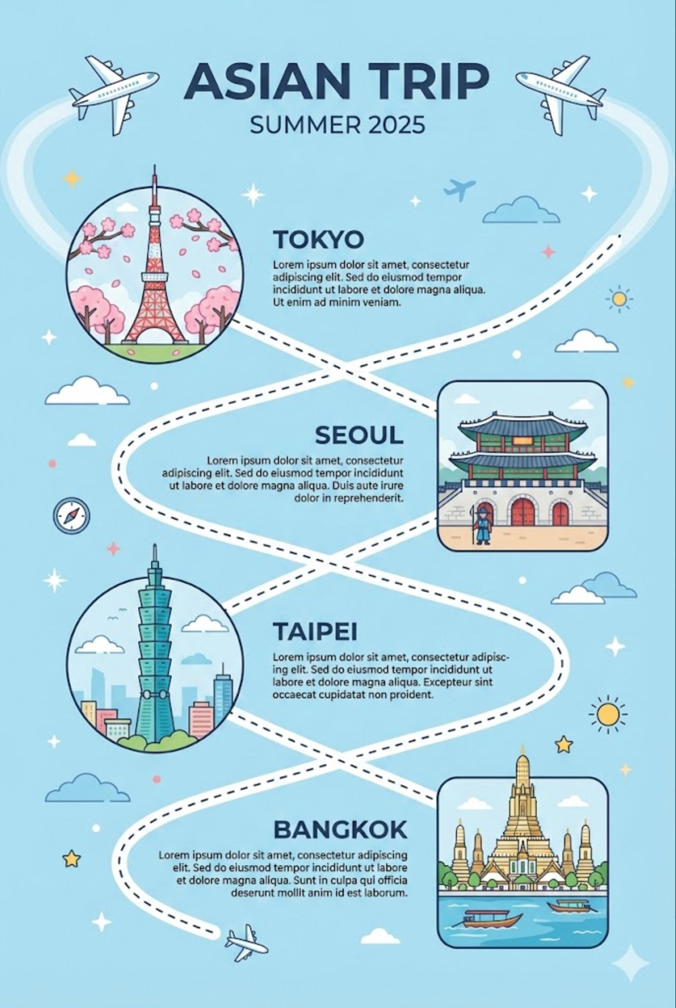 โปสเตอร์ไทม์ไลน์ท่องเที่ยว (Travel Itinerary)