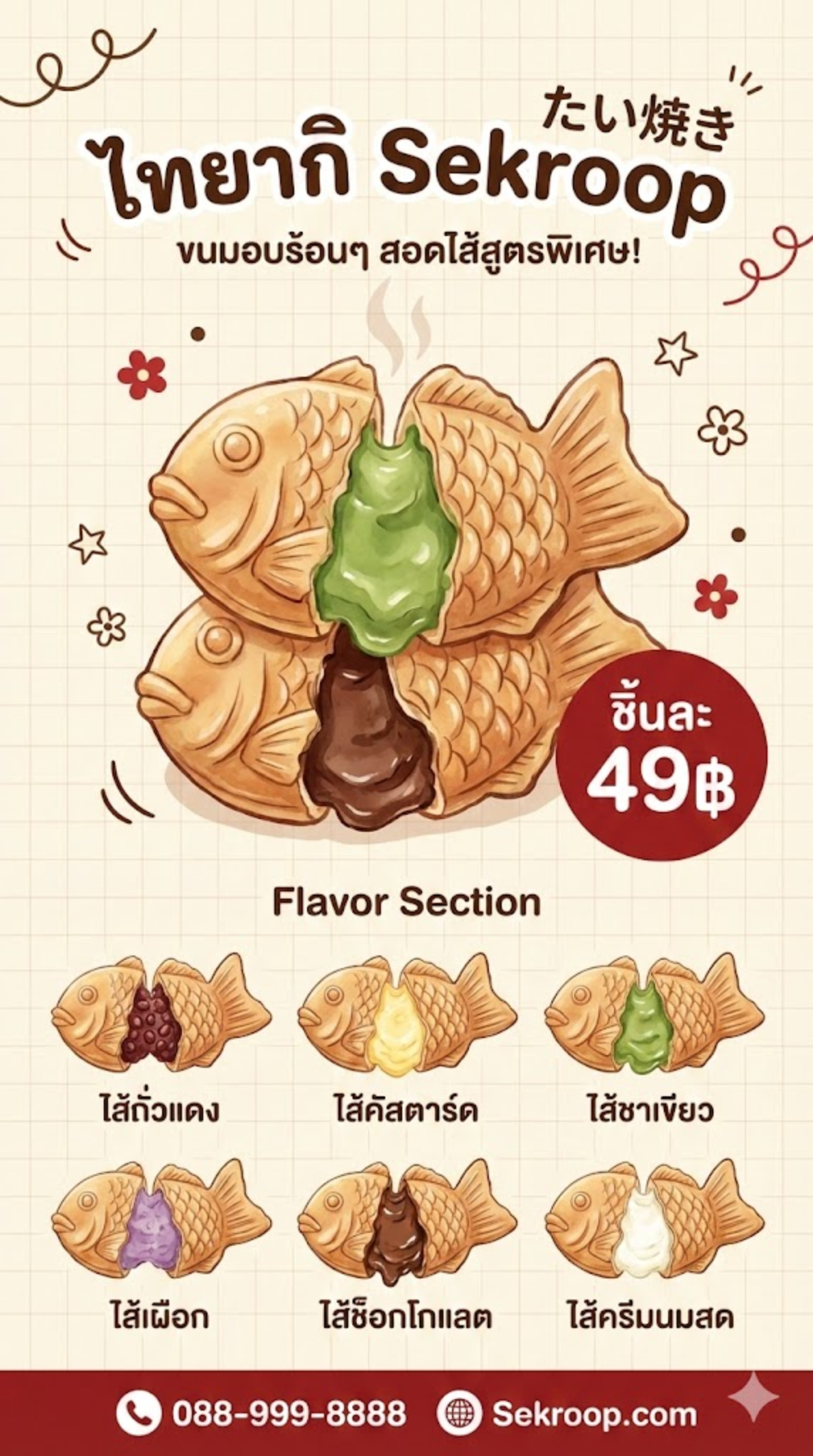 โปสเตอร์โปรโมทขนมไทยากิสไตล์ญี่ปุ่น