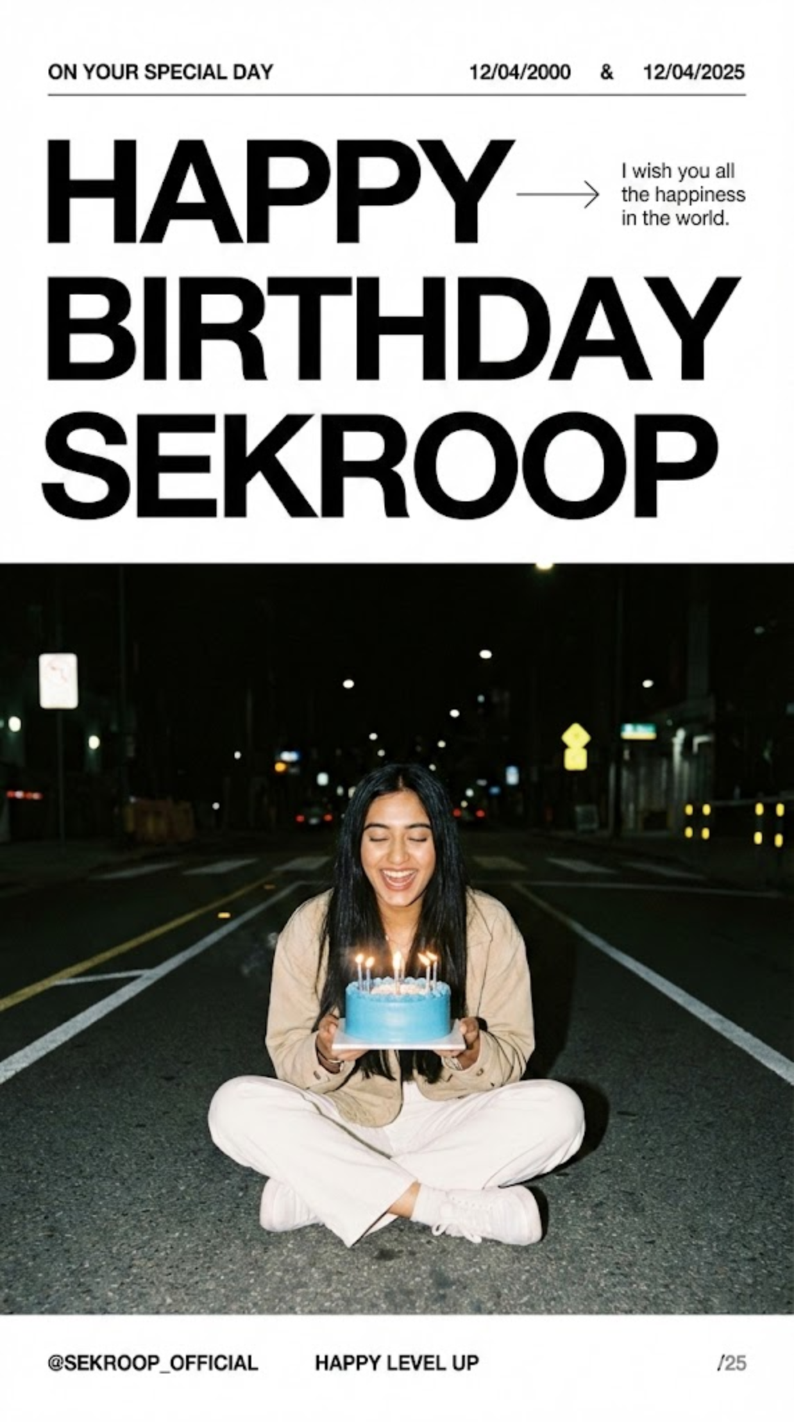 เทมเพลต Instagram Story สำหรับอวยพรวันเกิด ดีไซน์แบ่งครึ่งบนล่าง ทันสมัย เน้นตัวอักษรใหญ่และภาพถ่ายสตรีท เหมาะสำหรับ Gen Z
