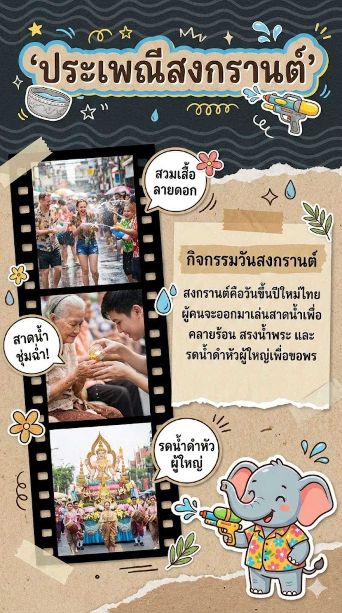 เทมเพลตสำหรับสร้างอินโฟกราฟิกแนะนำเทศกาล ประเพณี หรือวัฒนธรรมต่างๆ มาในสไตล์คอลลาจ (Collage) ที่ดูสนุกสนานและเป็นกันเอง เหมาะสำหรับการให้ข้อมูลที่น่าสนใจ