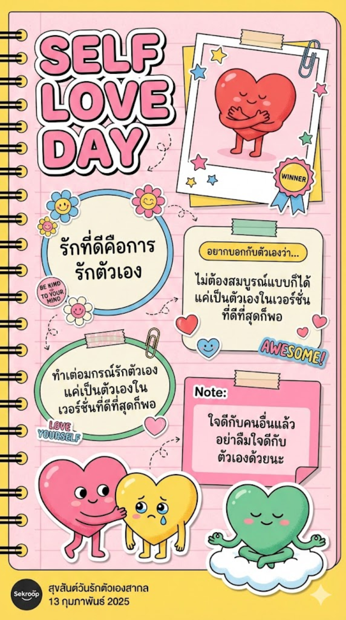 โปสเตอร์วันรักตัวเองสไตล์สมุดโน้ต